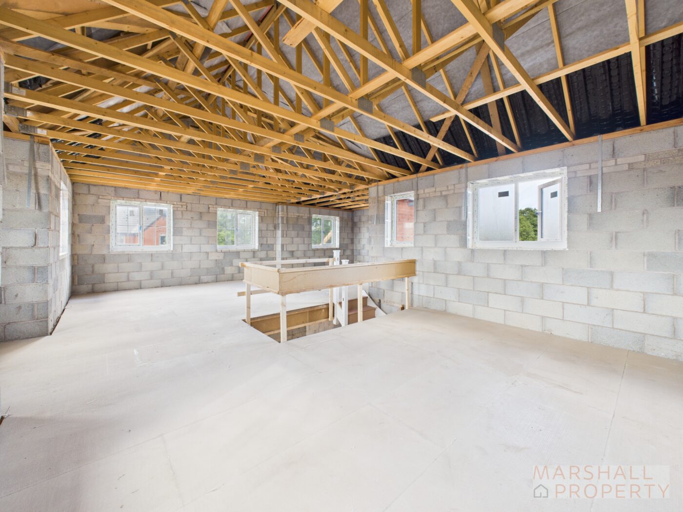 “With a shell home – you buy the outside shell of a watertight home, with walls, a roof, and windows, but it’s unfinished inside. It allows you to tailor the internal layout to suit your needs, including where to build internal walls. You’re responsible for everything from first fix which includes plumbing and electrics.”